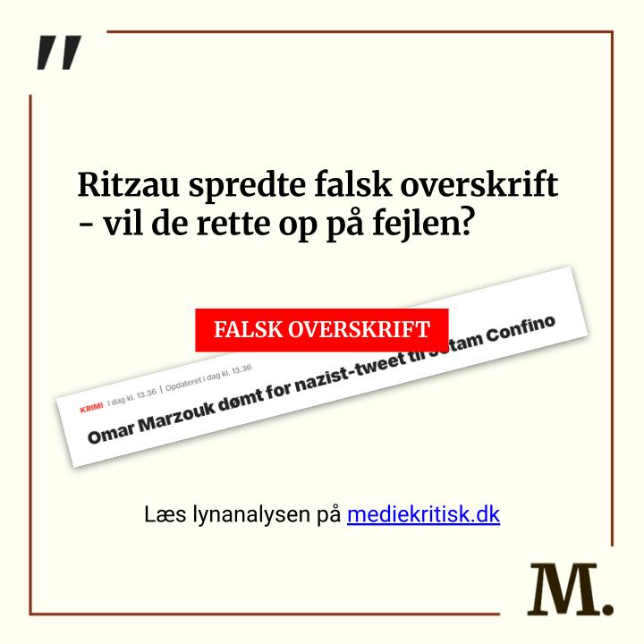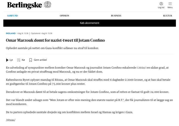Overskriften lød: ”Omar Marzouk dømt for nazist-tweet til Jotam Confino”. Læser man dommen, kan man se, at han eksplicit blev frikendt for netop dette tweet.